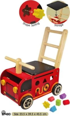 Houten Loopwagen Brandweer Met Blokken – I’m Toy