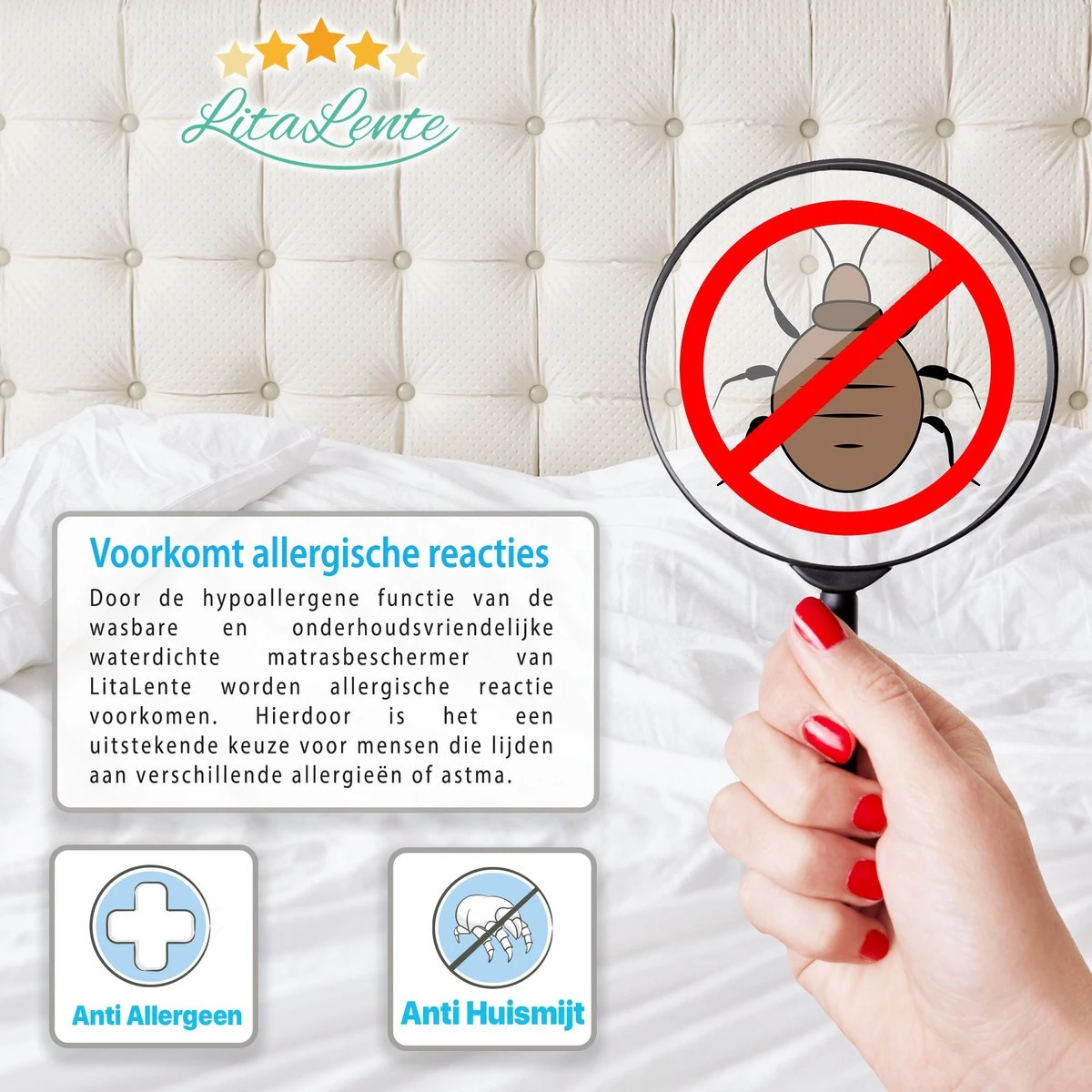 De polyurethaan laag vormt een fysieke barrière tegen huismijt en voorkomt dat deze diertjes in het matras kunnen leven. Huismijt is de voornaamste veroorzaker van allergieën die astma en ademhalingsproblemen tot gevolg hebben. Daarom is dit product geschikt voor mensen die allergisch voor huismijt zijn.