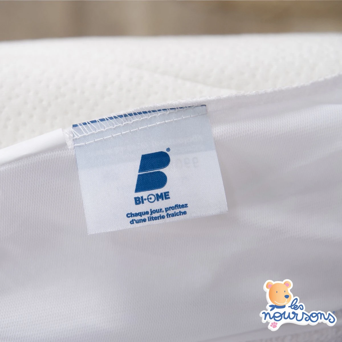 Deze matrasbeschermer is een onmisbare bondgenoot voor het behoud van de gezondheid van uw baby.Hij profiteert van de innoverende Bi-Ome® behandeling. Deze barrière tegen stofmijt, bacteriën en schimmels garandeert een optimale frisheid. Bi-Ome® is volledig onschadelijk voor mens en milieu en blijft doeltreffend gedurende de hele levenscyclus van het product, ondanks talrijke wasbeurten. Ideaal voor dagelijks gebruik, maar ook de perfecte metgezel voor uw vakantie of uitstapjes met baby. De katoenen badstof biedt een grote zachtheid en een uitstekende weerstand. 100% waterdicht, dit lakentje garandeert een onberispelijke netheid van het bedje van uw baby.De ademende onderlaag van polyurethaan is perfect stil en zorgt voor een vrije luchtcirculatie terwijl vloeistoffen perfect worden tegengehouden.Dit laken is makkelijk te onderhouden: het mag in de wasmachine op 60° en in de droogtrommel op een zacht programma. Het hoeslaken is over de hele lengte voorzien van elastiek en biedt een perfecte ondersteuning. Hij is rekbaar en past op matrassen tot 14 cm dik. Het waterdichte katoenen badstoffen matrasbeschermer is gemaakt van materialen met het OEKO-TEX 100-1 certificaat (het hoogste niveau van dit label wat eisen betreft) en is vrij van schadelijke stoffen, zodat uw baby gezonde en rustige nachten kan doorbrengen.