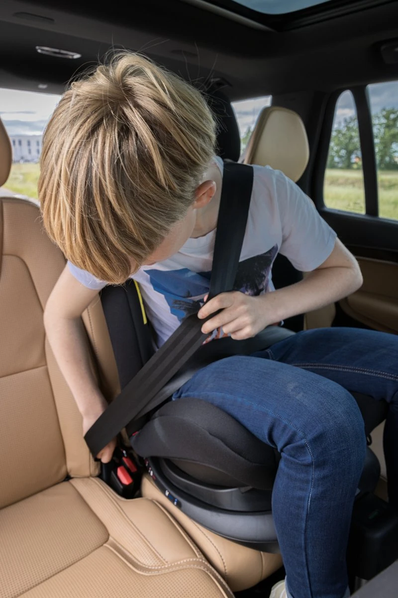 - Cocooning-ontwerp dat verandert in een gr 2/3 zitverhoger met opbergvak voor de gesp en het gordelsysteem