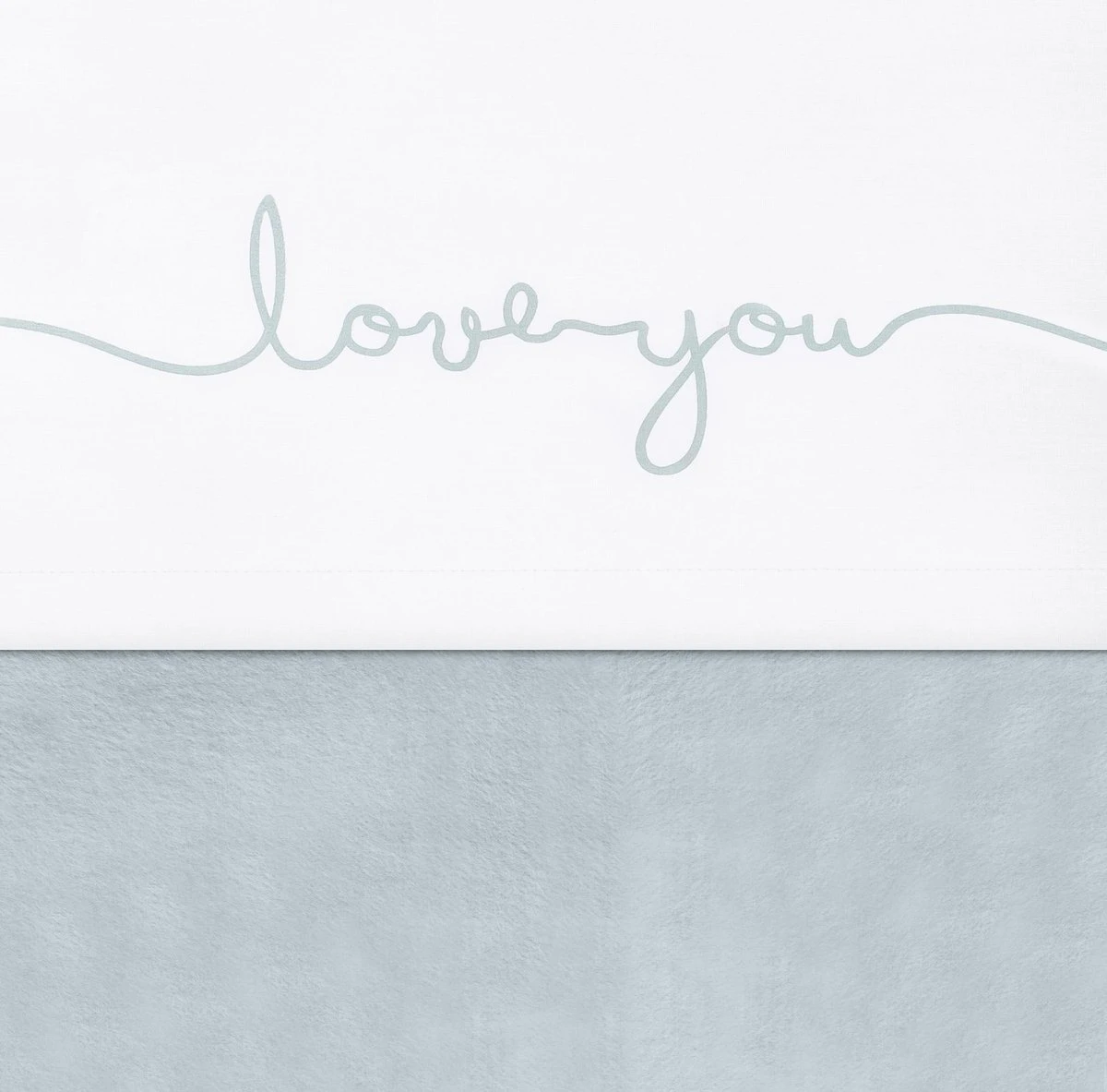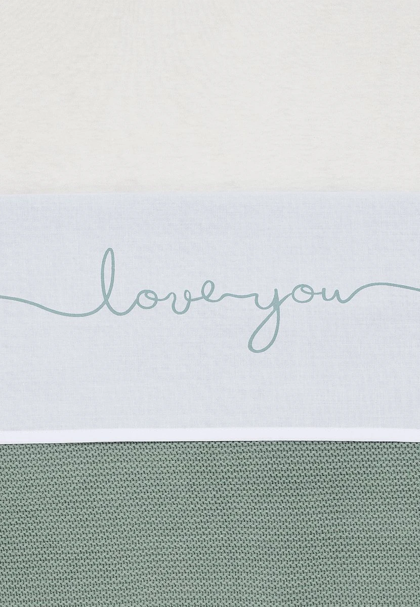 Met een wit lakentje kun je het bedje van jouw baby veilig, kort en strak opmaken. Door de zijkanten van het lakentje onder het matrasje te stoppen, slaapt jouw kleintje niet alleen veilig, maar heeft het ook een geborgen gevoel. Dit lieve lakentje met de tekst ‘love you’ past perfect bij de dekens uit het Basic knit thema en het Bliss knit thema van Jollein.