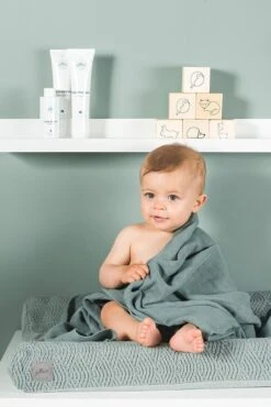 Dit bamboe hydrofiel is ideaal als handdoek na het badje. De bamboestof neemt veel vocht op en met de dunne stof kun je gemakkelijk tussen de huidplooitjes de huid droogdeppen. De zachte stof beschermt het tere babyhuidje.