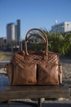 Praktische en duurzame verzorgingstassen. Perfect voor ieder avontuur. Dus ga erop uit in stijl, explore more en maak mooie herinneringen samen! Deze verzorgingstas is een city chic model in leatherlook. Het model heeft stiksels in ruitjespatroon, wat de verzorgingstas een luxueuze uitstraling geeft. Naast de stijlvolle uitstraling is de verzorgingstas ook zeer praktisch met een ruim hoofdvak en diverse insteek en opbergvakjes. Hiermee is het een ware it-bag voor de fashionable mama’s.