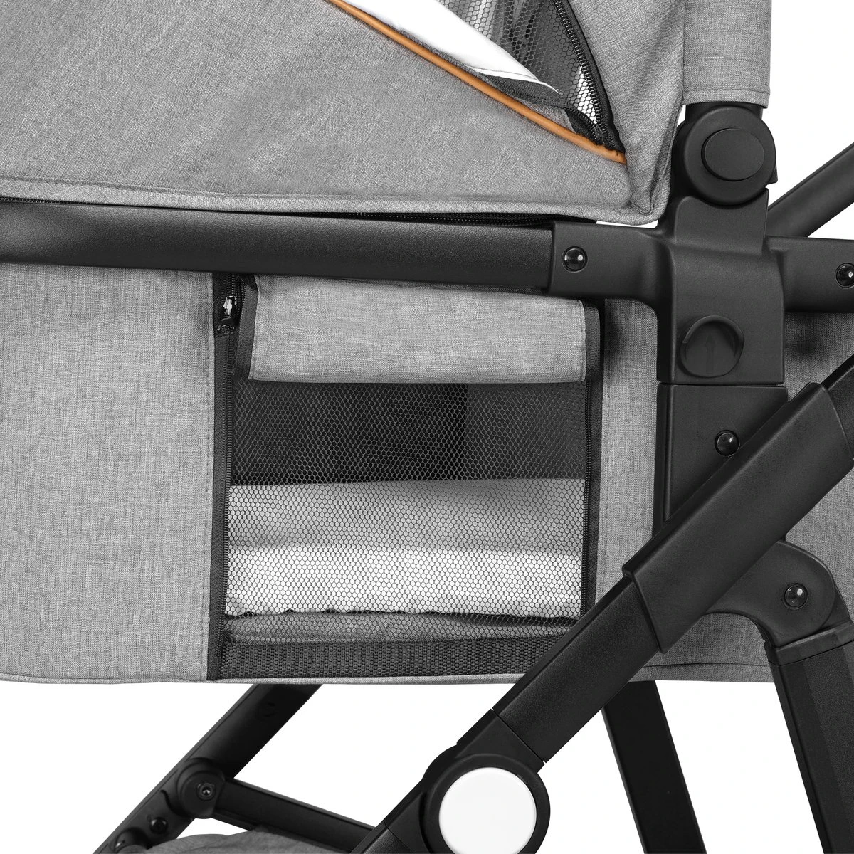 - Een rijke set accessoires – een tas, klamboe, regenhoes, ververskussen, universele adapters, hoes voor wieg en kinderwagen