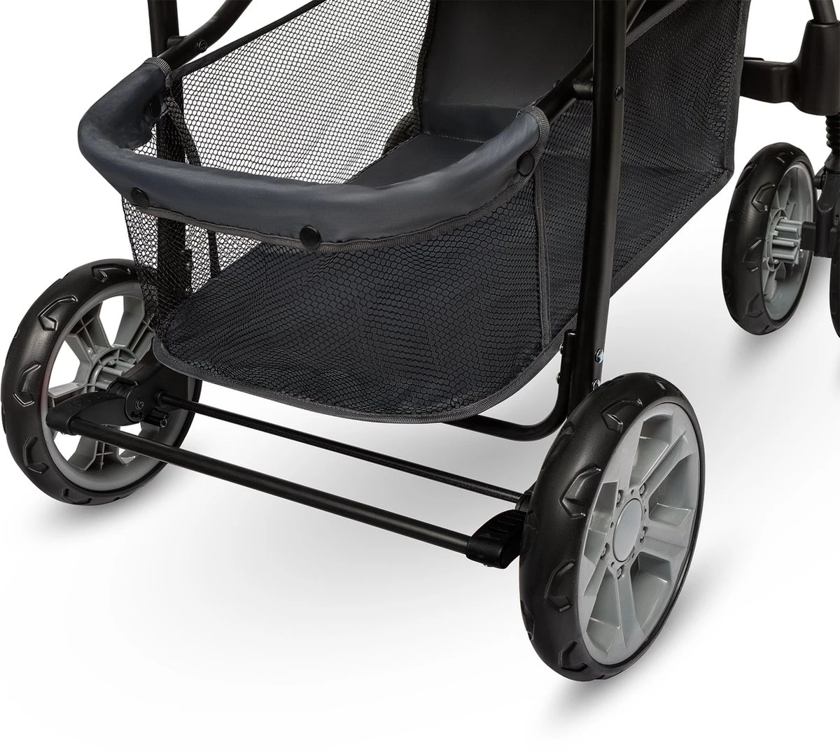 Een ruime mand biedt plaats aan alle benodigde verzorgingsaccessoires en het favoriete speelgoed van de baby. Het is ook perfect om te winkelen.