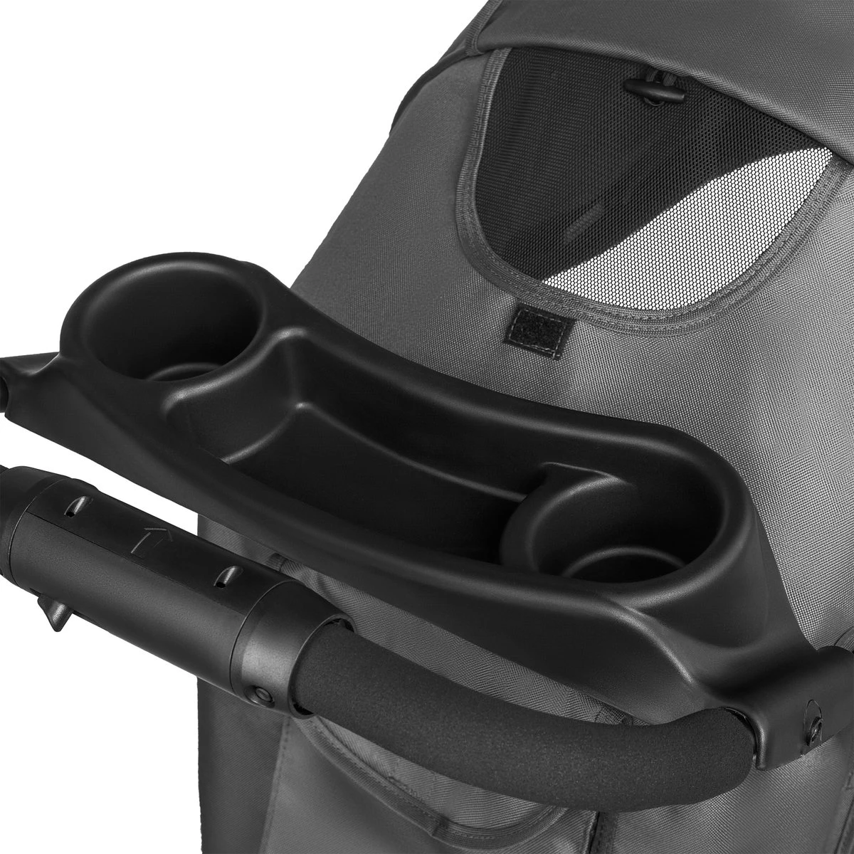 Het voorblad heeft een bidon- of bekerhouder en een plek om te spelen. Het kan gemakkelijk worden gedemonteerd. Het dienblad is tevens een extra bescherming tegen uit de kinderwagen vallen.
