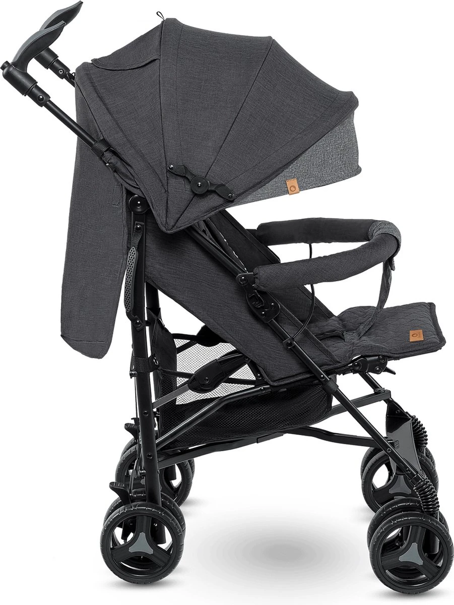 Voor het comfort van de baby is de veiligheidsbeugel afgezet van stof met een zachte schuimvulling. Biedt extra bescherming tegen het vallen uit de buggy.