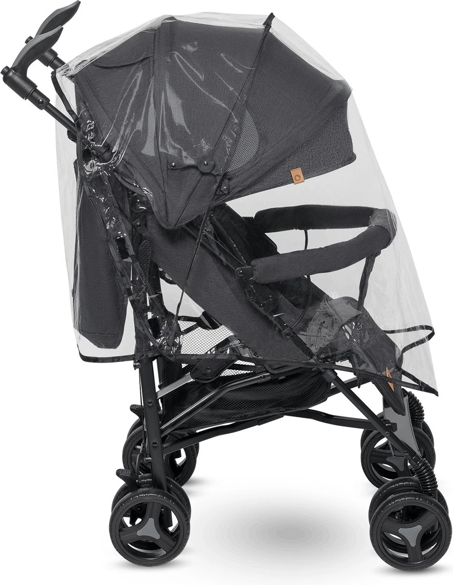 Deze luifel biedt bescherming tegen zonnestralen, regen en wind. Dankzij het transparante venster kan de ouder op elk moment zien of het kind iets mist.