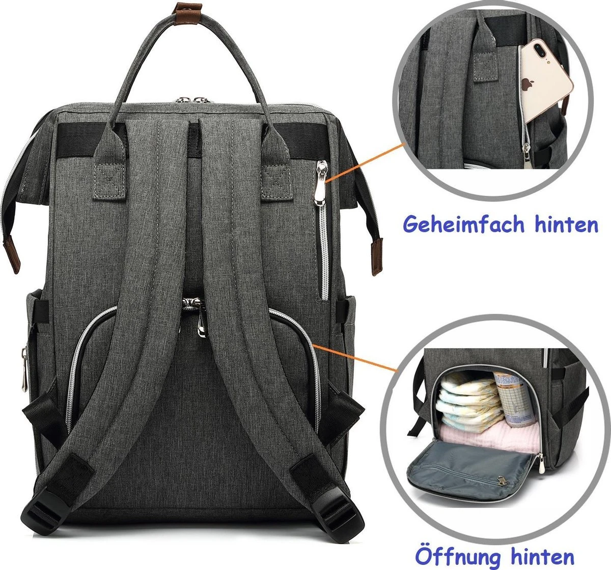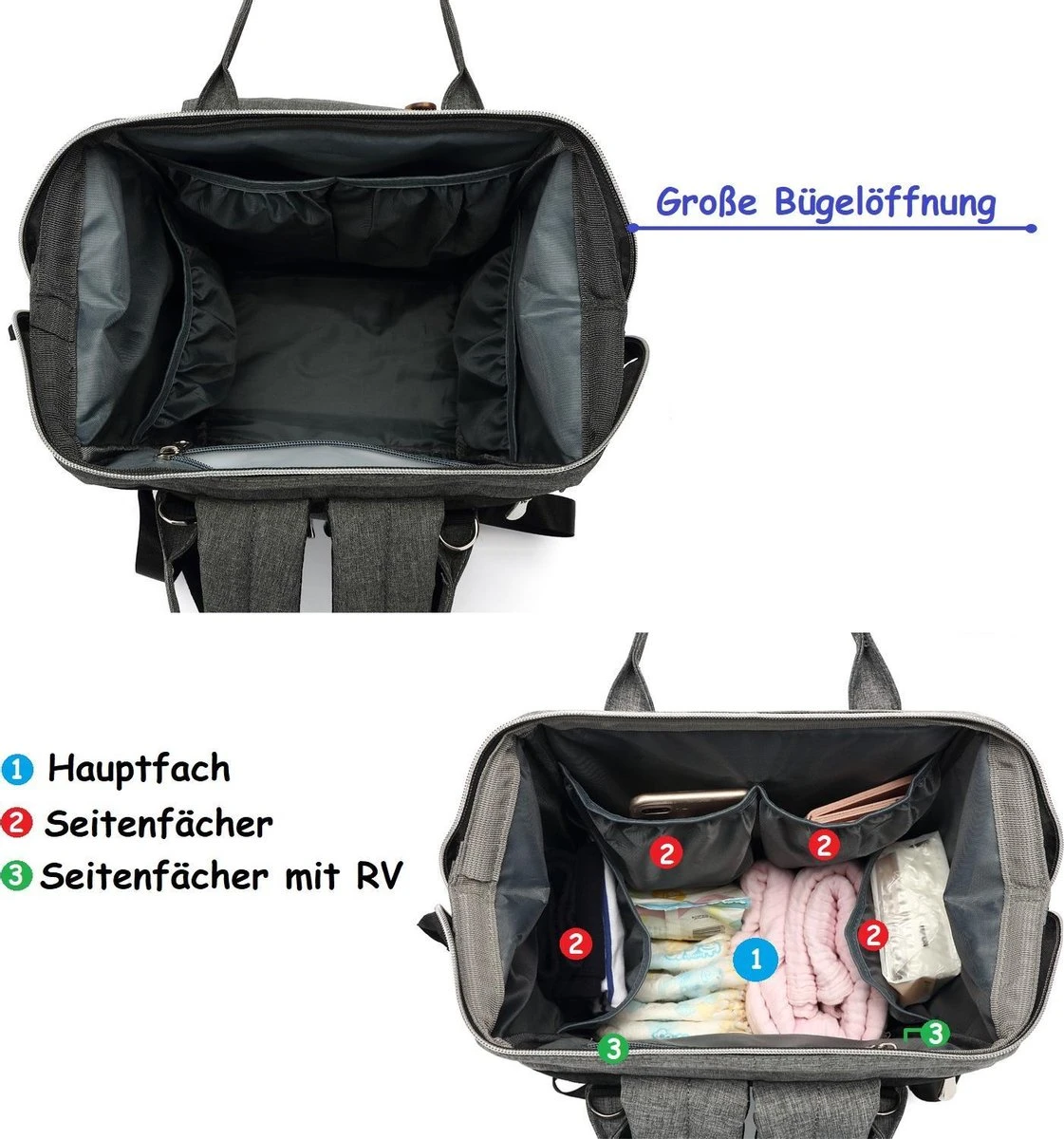 •❤️ Grote opening: door de grote opening kun je heel eenvoudig je spullen in de grote luierugzak leggen en alles snel terugvinden.