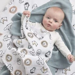 Met deze multifunctionele Meyco Baby Hydrofiele Swaddles 3-pack Animal, bedrukt met vrolijke diertjes, kun je met de verzorging van je kleintje alle kanten op. Of je ze nou als inbakerdoek, wikkeldoek, handdoek, borstvoedingscover, knuffeldoekje, spuugdoekje óf dekentje gebruikt, ze zijn standaard heerlijk zacht en comfortabel voor de tere babyhuid. Het 100% hydrofiel katoen neemt vocht zeer goed op en droogt ook nog eens supersnel. Onmisbaar en Ideaal om altijd bij je te hebben!