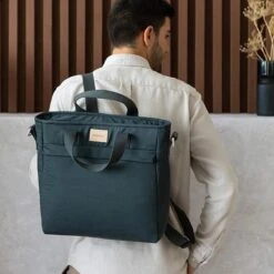 Deze elegante luiertas rugzak Carbon Blue uit de Nobodinoz Baby on the Go collectie is super praktisch! Je kan deze verzorgingstas op 3 manieren dragen: in de hand, als rugzak en vastgemaakt aan de duwstang van kinderwagen met de verstelbare en verwijderbare klittenbandsluitingen. De luiertas heeft 1 groot compartiment met twee binnenzakken en ©©n grote buitenzak met ritssluiting. Zowel de buitenstof als de binnenvoering zijn waterdicht. Dankzij zijn strakke vormgeving en neutrale kleur past deze luiertas rugzak perfect bij elke stijl.