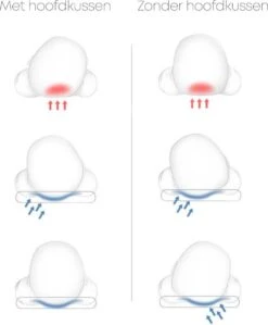 Door het dieper liggende schedeloppervlak en traagschuim materiaal wordt er gezorgd voor een eerlijke verdeling van het hoofdje op het lig oppervlak. Door deze juiste verdeling, zal het drukpunt gelijk verdeeld worden. Waardoor het schedeltje een juiste ronde vorm krijgt of behoudt.